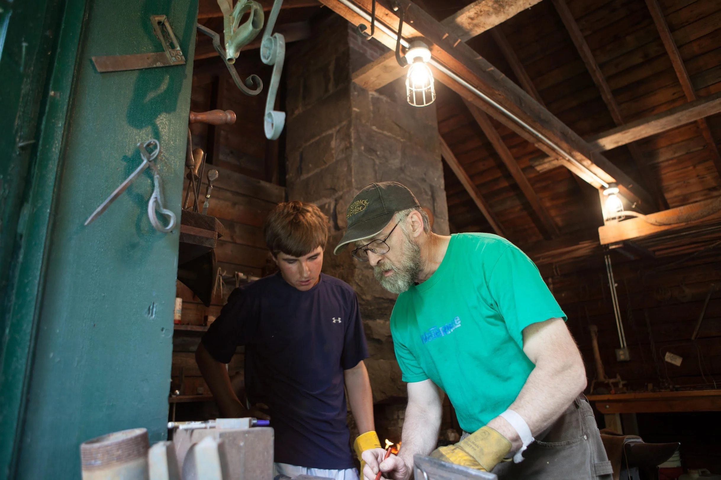 Raised at White Pine Camp in the Adirondack Mountains, David comes from a family whose roots in the community stretch back five generations. He has worked as a blacksmith since 1986 and is widely respected for his master craftsmanship and artistic skill. In 1993, he was recognized as one of the nation’s top 200 craftspeople by Early American Life.