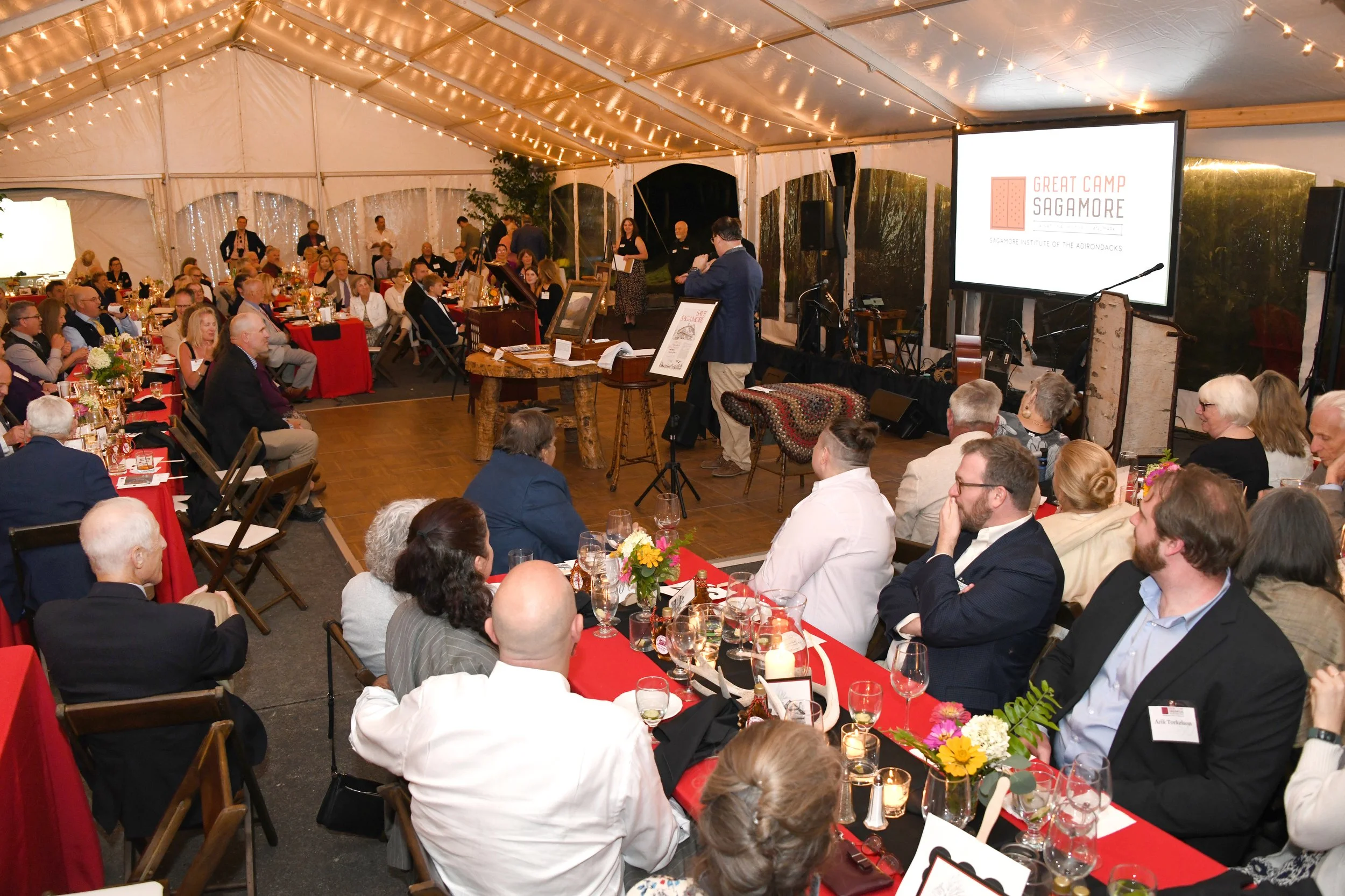 The evening celebrated the forethought and innovative work by the founders of what is now Sagamore Institute of the Adirondacks as well as the nascent Preservation League of New York State. Together, they helped ensure the preservation of Sagamore and our ability to share its transformative powers with others for the past 50 years and for the future.